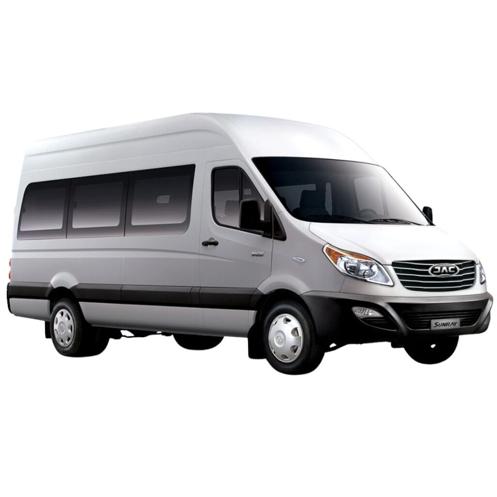 El JAC Sunray es un vehículo comercial diseñado para el transporte de pasajeros, con versiones de 17 y 18 asientos. Este modelo se enfoca en la versatilidad y la comodidad, ideal para empresas de transporte, servicios turísticos, o transporte ejecutivo, combinando un diseño robusto con un rendimiento eficiente y una experiencia de conducción cómoda.